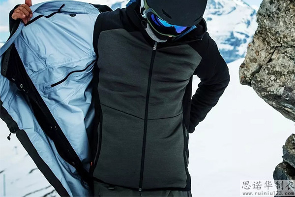 它相當于羽絨服,棉衣和抓絨夾層,負責保溫功能。 采用300克搖粒絨內(nèi)膽和循環(huán)鎖定溫度。