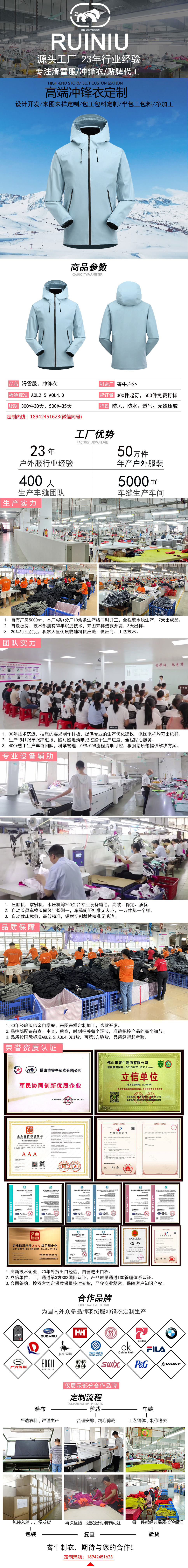 廣東睿牛戶外用品有限公司:專注沖鋒衣、滑雪服、風衣、夾克的梭織服裝定制加工廠家