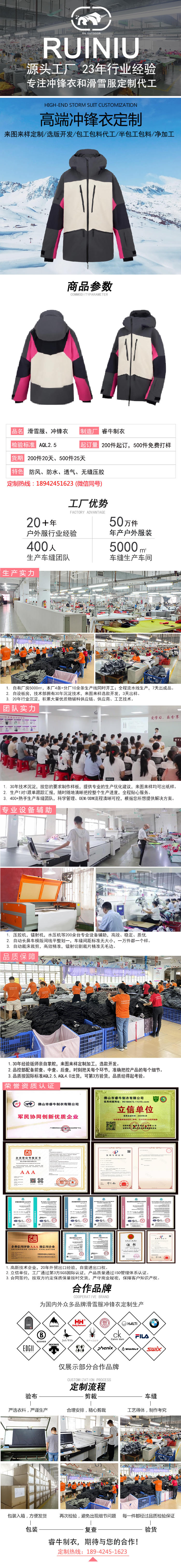 持續23年專注沖鋒衣、滑雪服定制加工廠家
