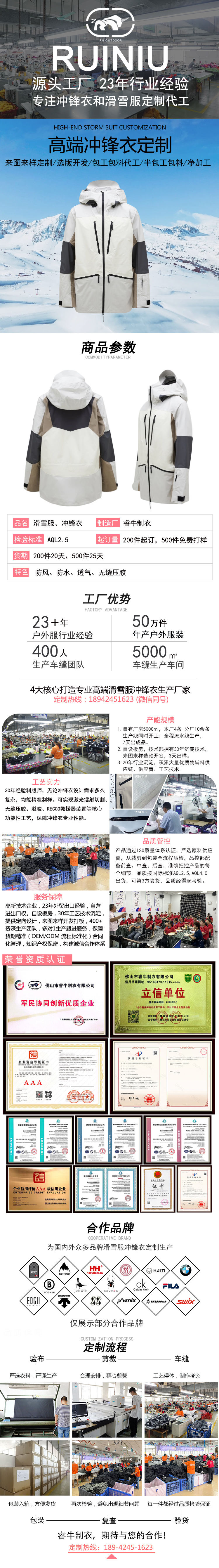 持續23年專注沖鋒衣、滑雪服定制加工廠家